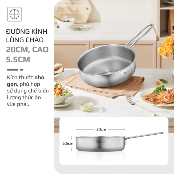 Thành chảo cao, hạn chế bắn dầu, phù hợp để chiên, xào, áp chảo nhiều loại thực phẩm.
