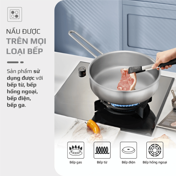 Đa năng, sử dụng được trên tất cả các loại bếp: bếp gas, bếp từ, bếp hồng ngoại.