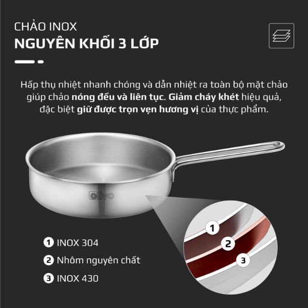 Chất liệu inox 304 cao cấp, không gỉ, an toàn, không thôi nhiễm chất độc hại khi tiếp xúc nhiệt độ cao.