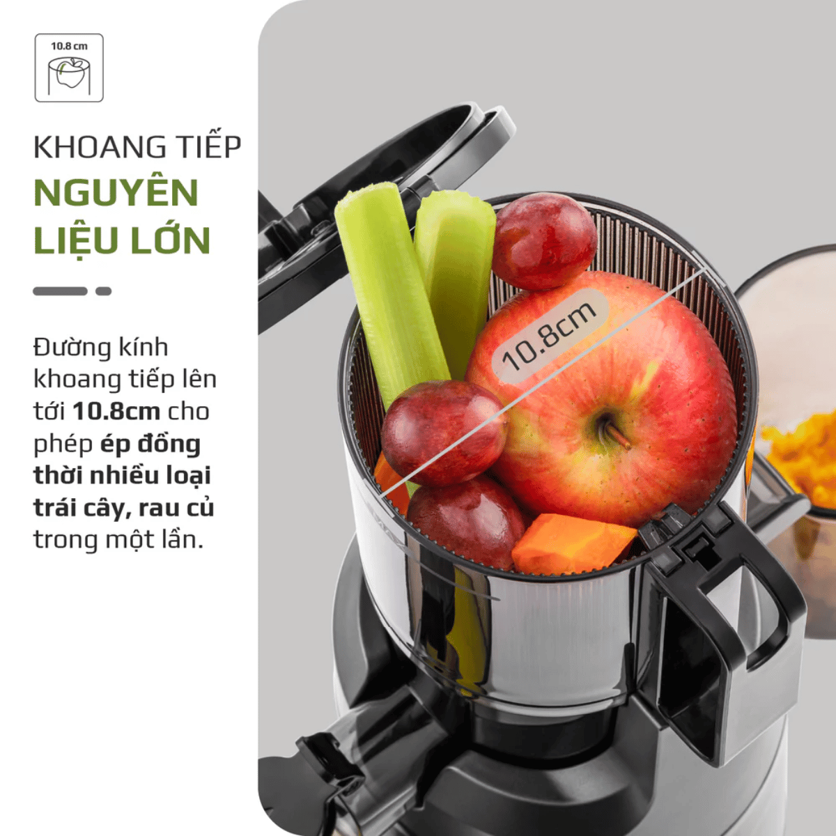 Ép kiệt bã đến 98%, cho lượng nước ép nhiều hơn, hạn chế lãng phí.