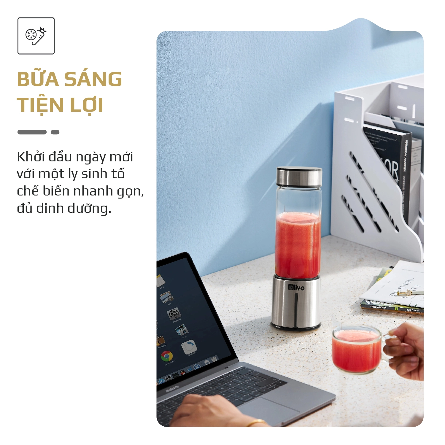 Máy xay sinh tố cầm tay Olivo PB01 hỗ trợ xay nhanh các loại trái cây, rau củ mềm để pha sinh tố, nước ép hoặc đồ uống dinh dưỡng. Thiết kế cầm tay gọn nhẹ giúp thao tác linh hoạt, dễ mang theo khi đi làm, tập luyện hoặc du lịch. PB01 phù hợp sử dụng cá nhân và pha chế nhanh trong ngày.