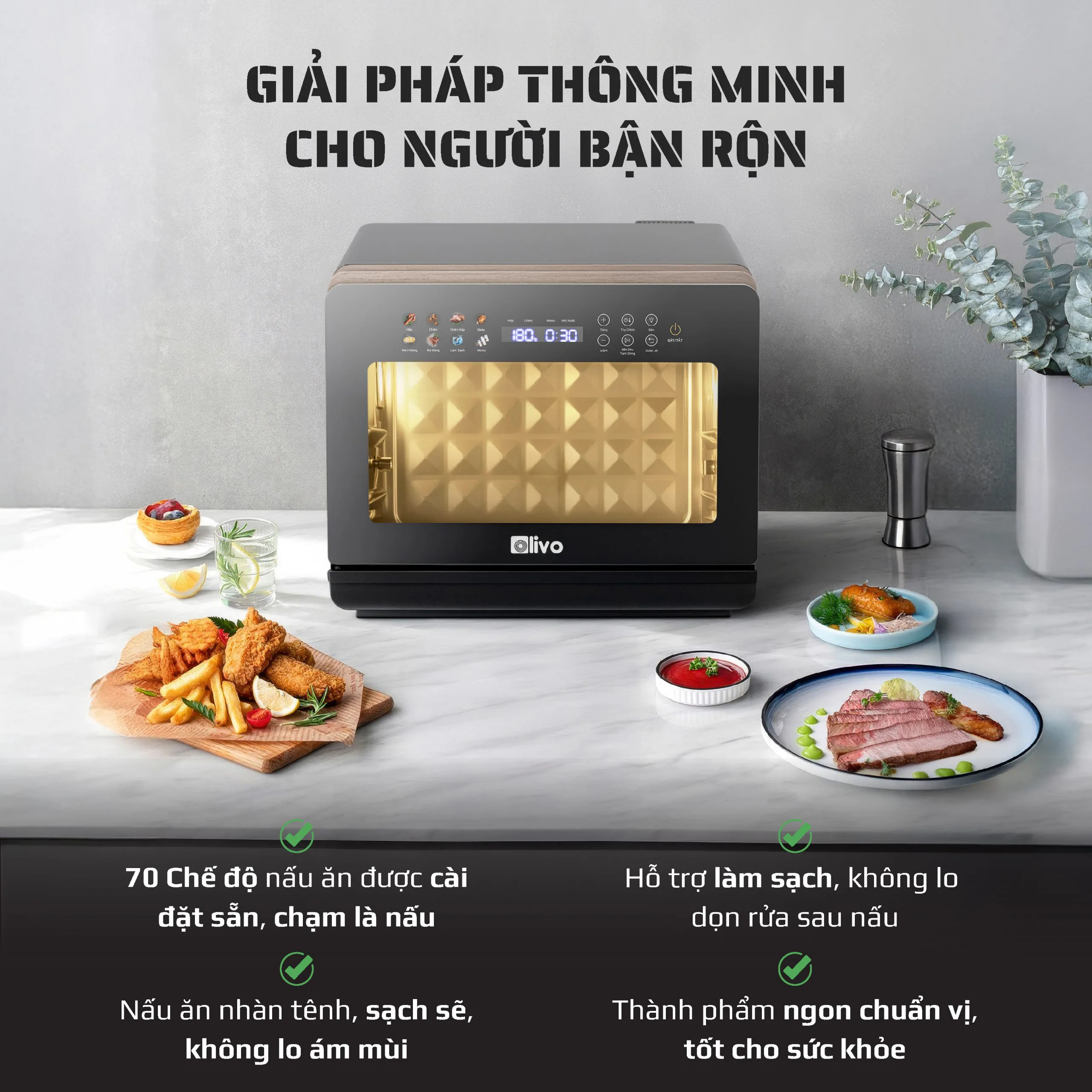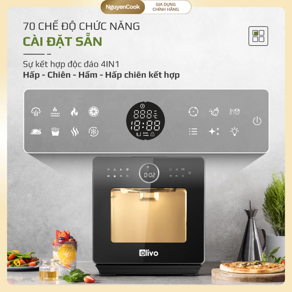 1.Nồi Chiên Hấp Đa Năng OLIVO SF16 PRO Bản Mới Nhất 2025 – Đầy Đủ Phụ Kiện, 70 Chế Độ Nấu, Dung Tích 16L, Lòng Inox 304 An Toàn
