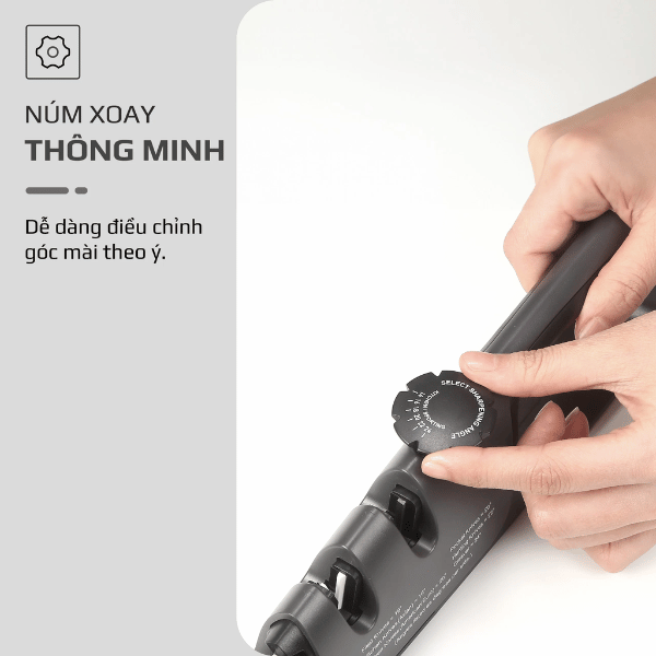 2. NÚM XOAY ĐIỀU CHỈNH GÓC MÀI ĐÁP ỨNG NHU CẦU SỬ DỤNG CHO MỌI KIỂU DAONúm xoay điều chỉnh góc mài nằm ngay phía trên khe mài Carbide. Trước khi mài cần chọn góc mài phù hợp từng loại dao để tiết kiệm thời gian làm sắc.