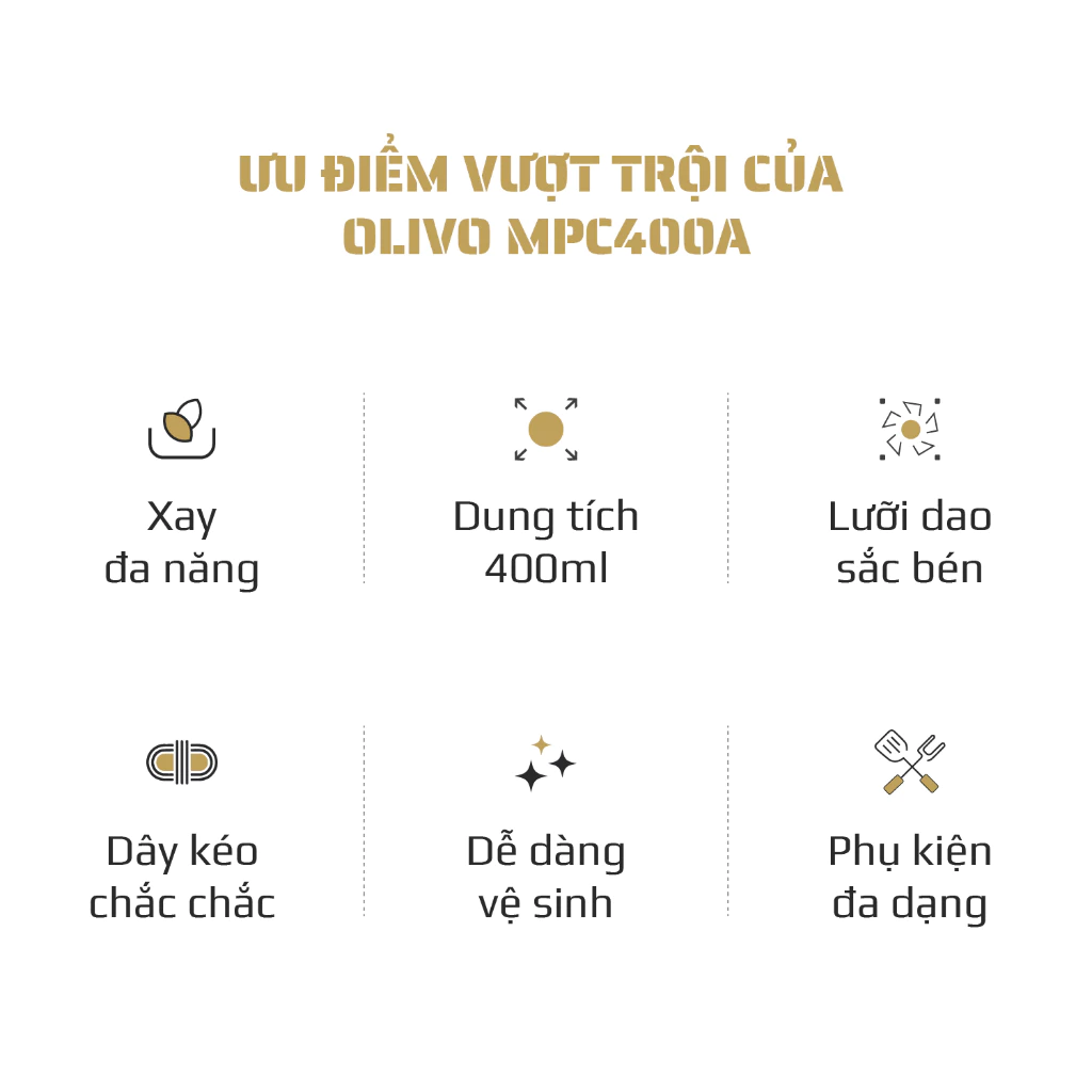 ☑️ Đặc điểm nổi bật của máy xay đa năng mini Olivo MPC400A