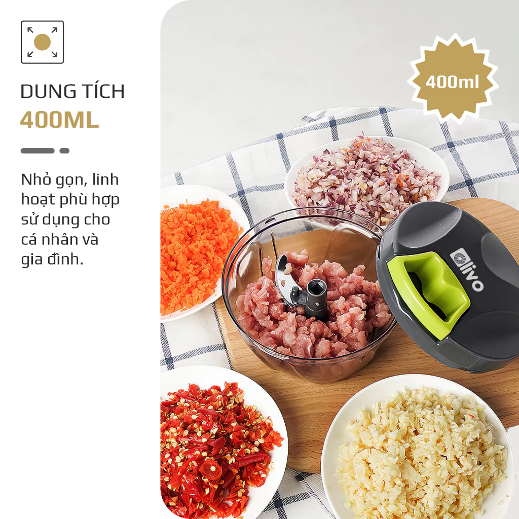 - Dung tích cối xay 400ml: hỗ trợ tối đa khi bạn cần xay lượng vừa phải, không cần lỉnh kỉnh dao thớt hay phải vệ sinh nhiều.