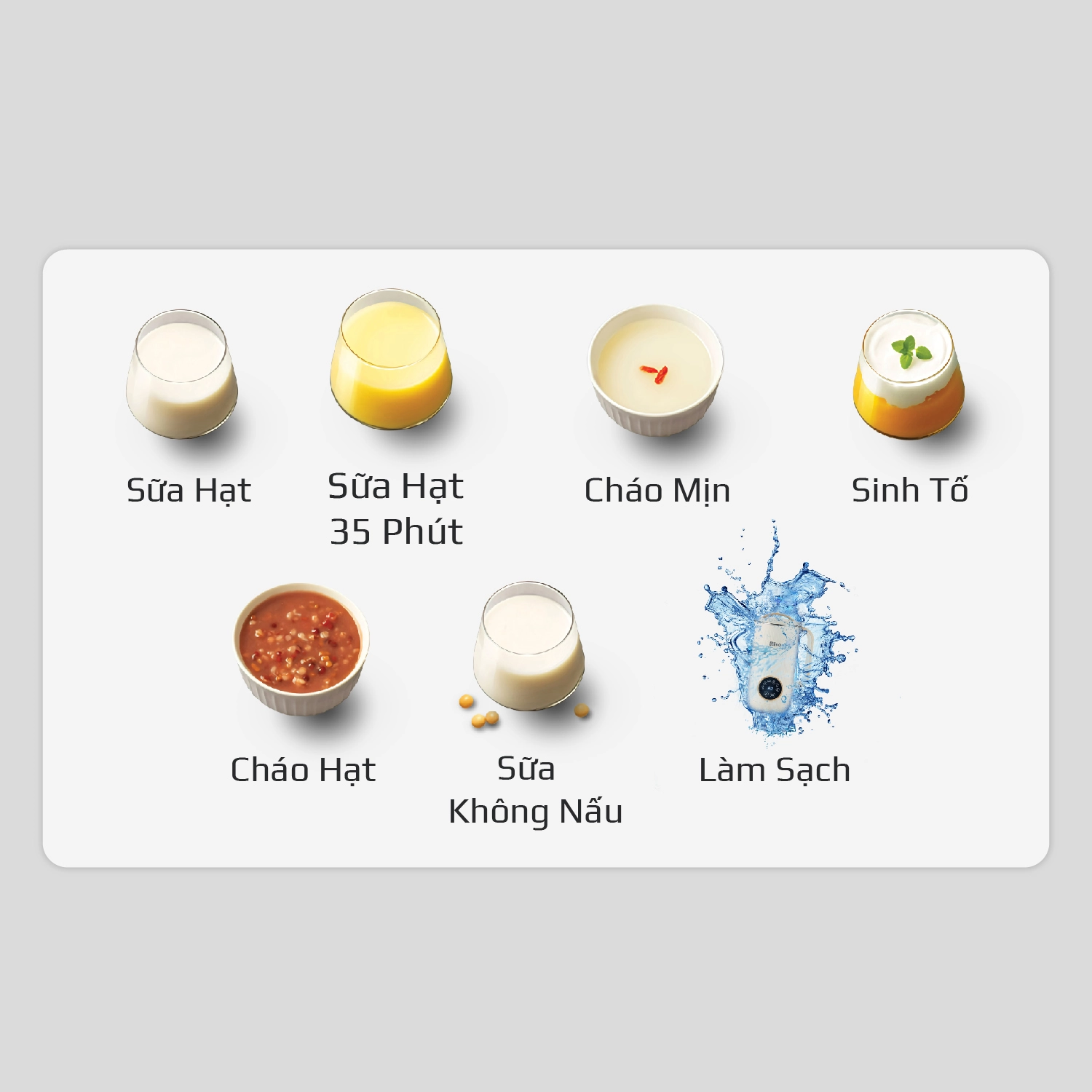 Olivo CB400 Pro cho phép chế biến nhiều món như cháo, súp, sinh tố, sữa hạt hay các món xay nấu đơn giản. Máy xay nhuyễn mịn, nấu chín đều, giúp giữ trọn hương vị và dưỡng chất của thực phẩm, phù hợp sử dụng hằng ngày.